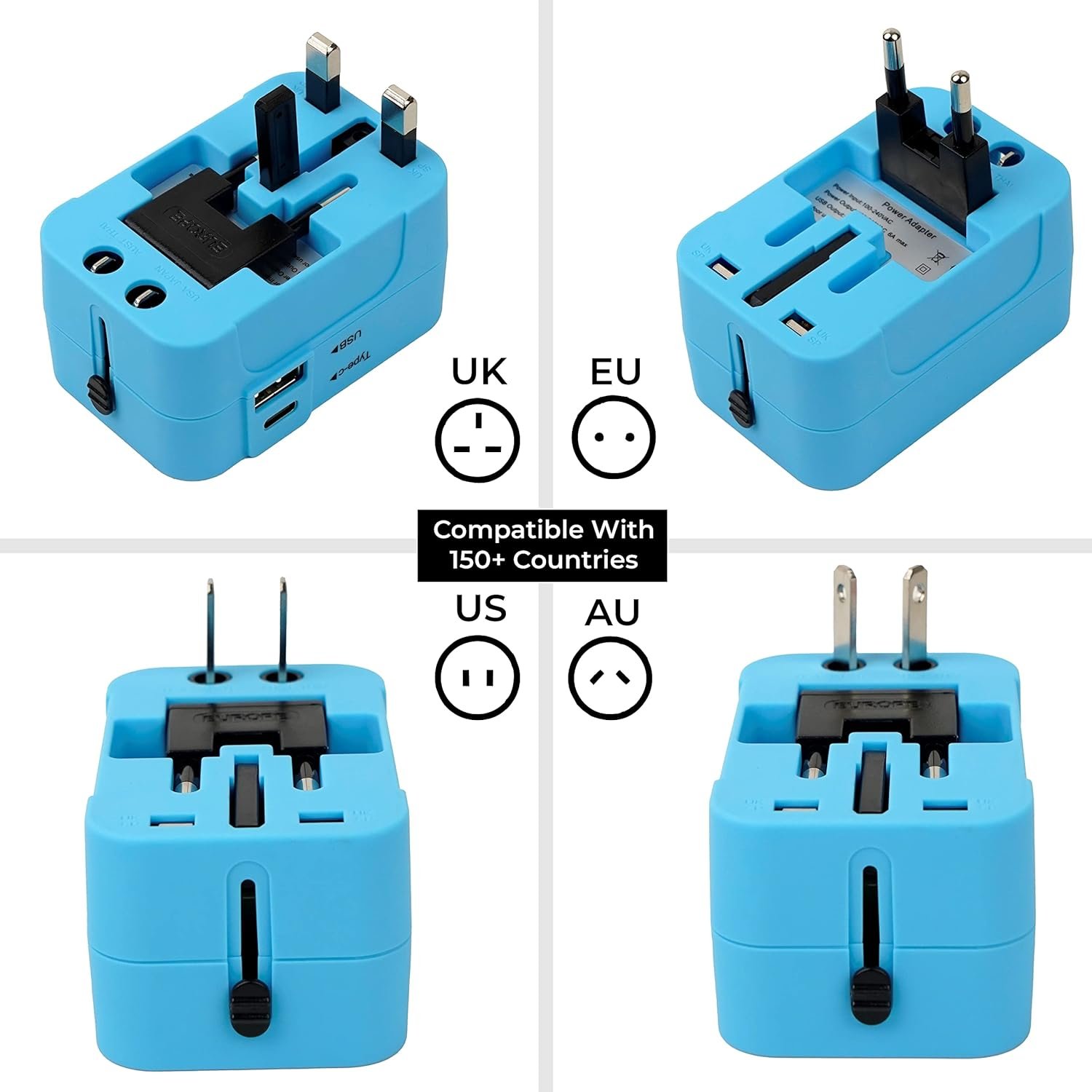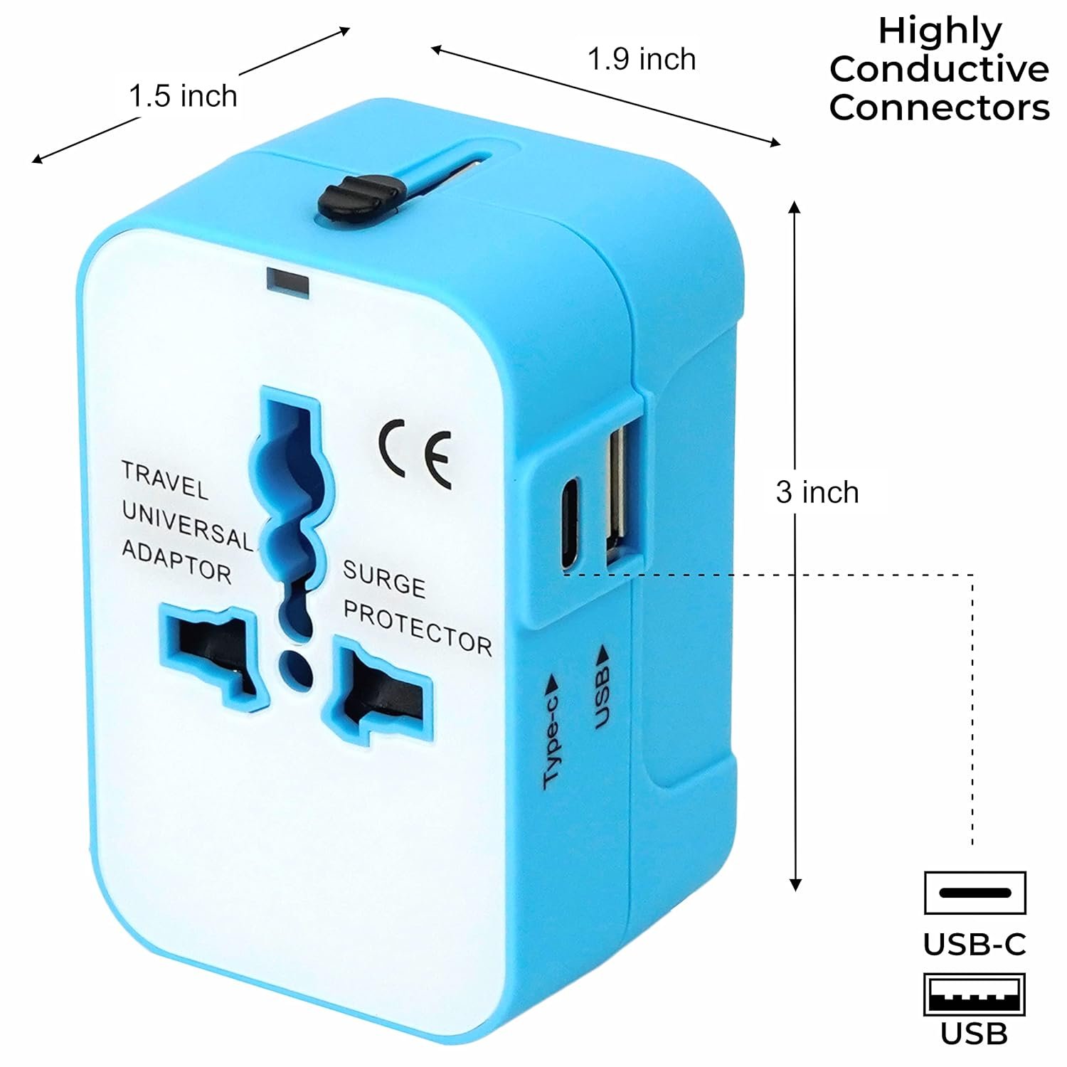 rts Universal Travel Adapter with Type C, 3 in 1 Universal Adapter Plug, Travel Accessories with 1 USB, 1 USB-C with 2.4A, Travel Adaptor International All in One Ports for Phone, Laptop, Mobile