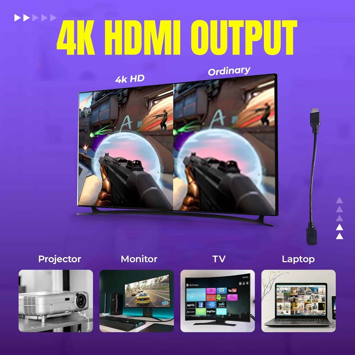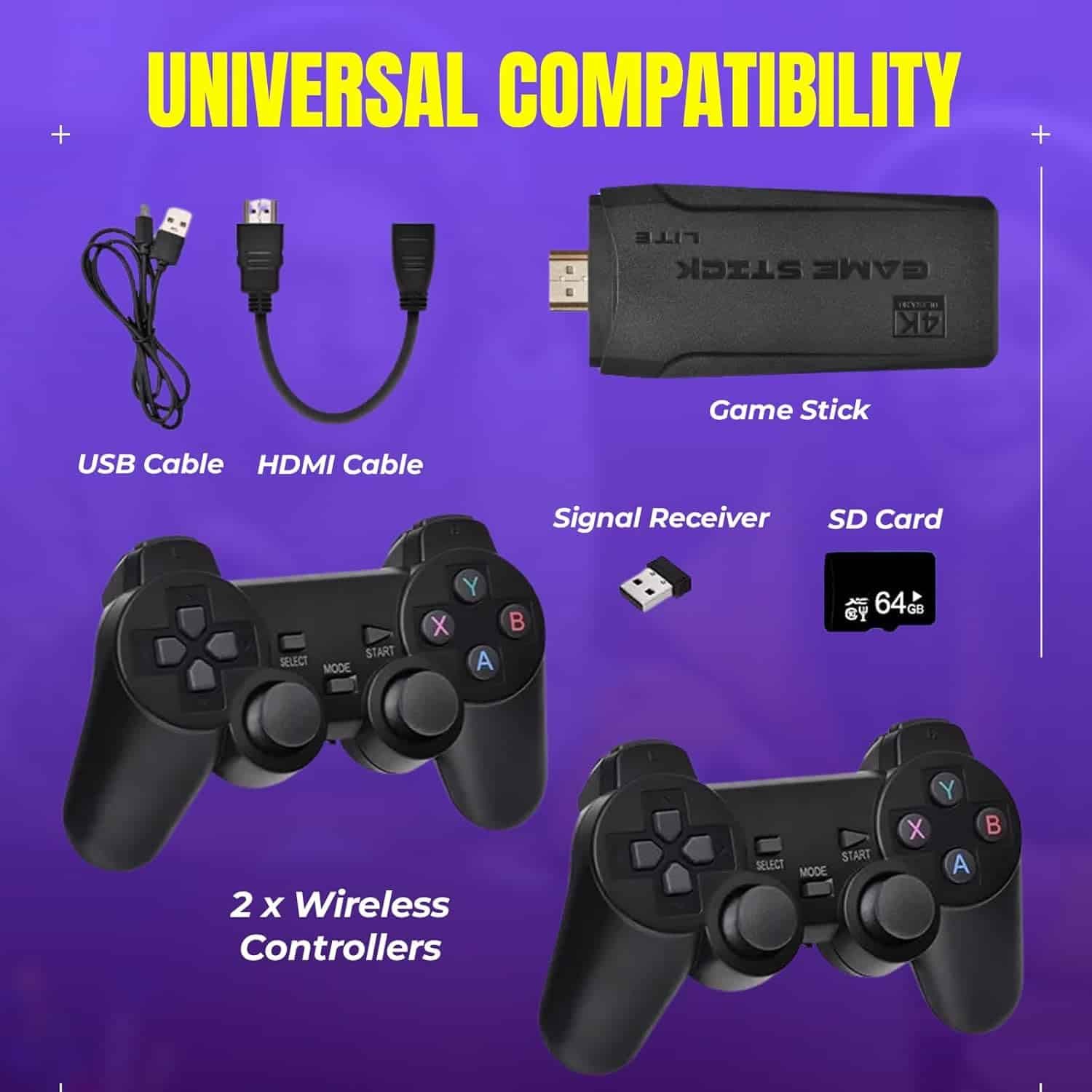 Easy Plug & Play Setup: No complicated installation required! Just connect to any TV or monitor via HDMI, power it up, and start playing instantly. Compatible with multiple devices for flexibility.