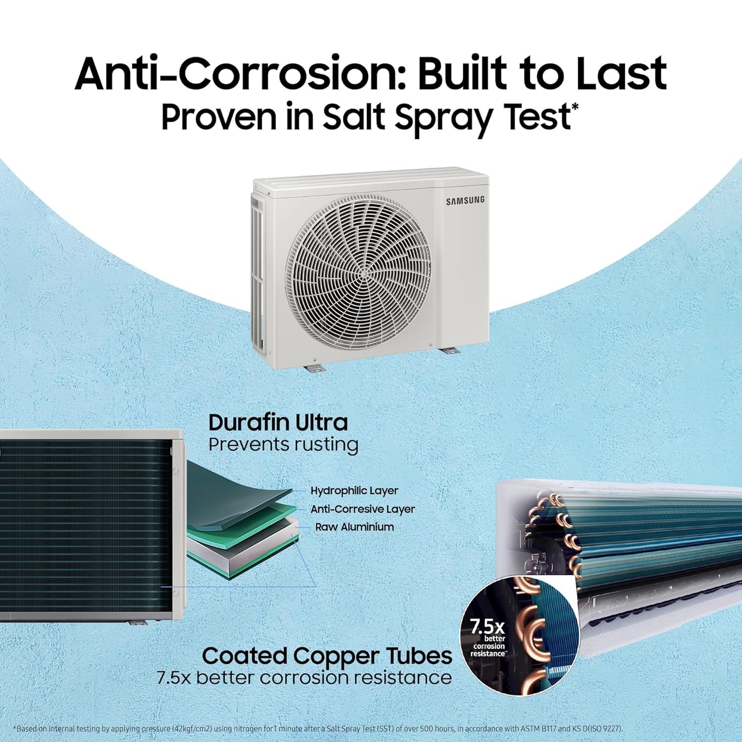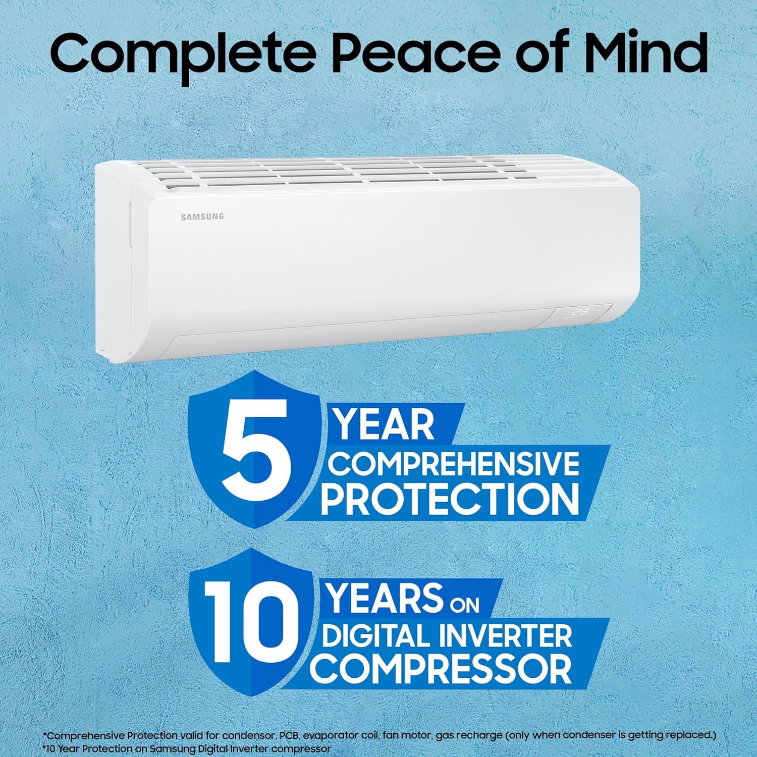 Samsung 1 Ton 3 Star Digital Inverter Split AC (Faster & Powerful Cooling even at 58 Degree C, 100% Copper, 5 year comprehensive warranty, 5 Step Convertible, AR50F12D0LHNNA, White)