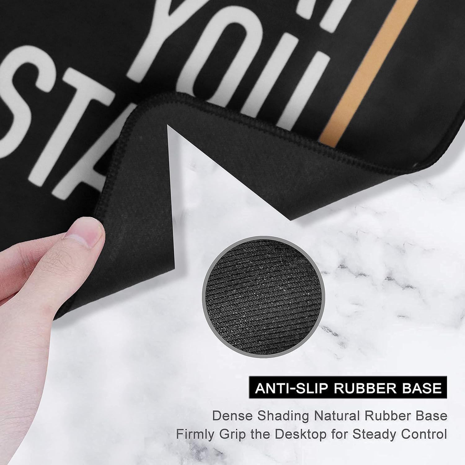 STABLE RUBBER BASE : Rubberized grip and texture, let’s use this mouse pad on any surface. While sturdy, it’s flexible enough to be rolled up for easy transport, to move around so you can work or game wherever you want. The rubber base keeps the entire surface in place of the cloth from bunching up to maintain smooth mouse movement across the entire desktop.