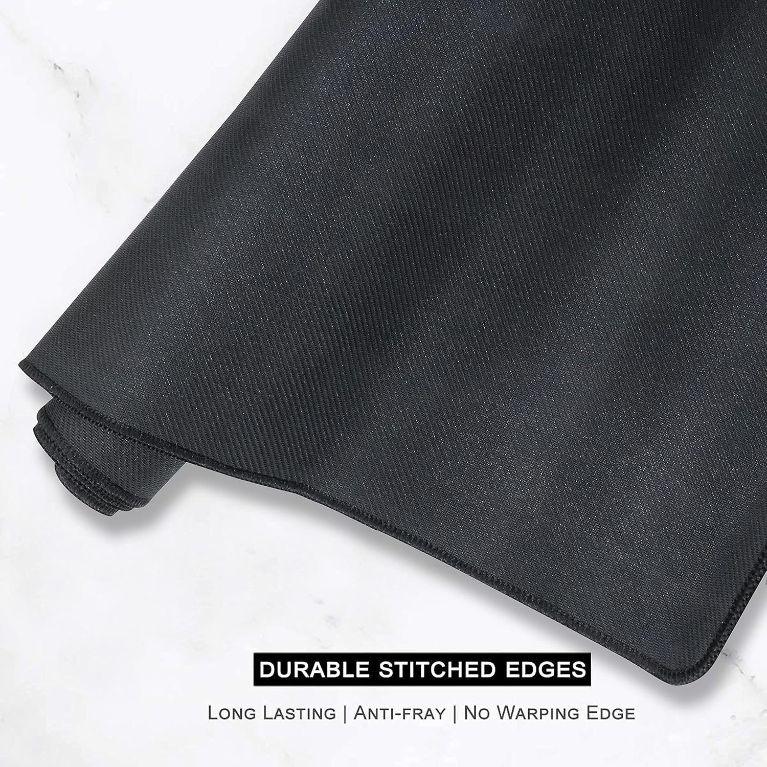REINFORCED EDGES: The large extended size of the mouse pad has well designed edges which can prevent wear, deformation and degumming even after prolonged use. The edges are flat for the added comfort of your wrists and hands, making long hours on the computer or laptop easier.