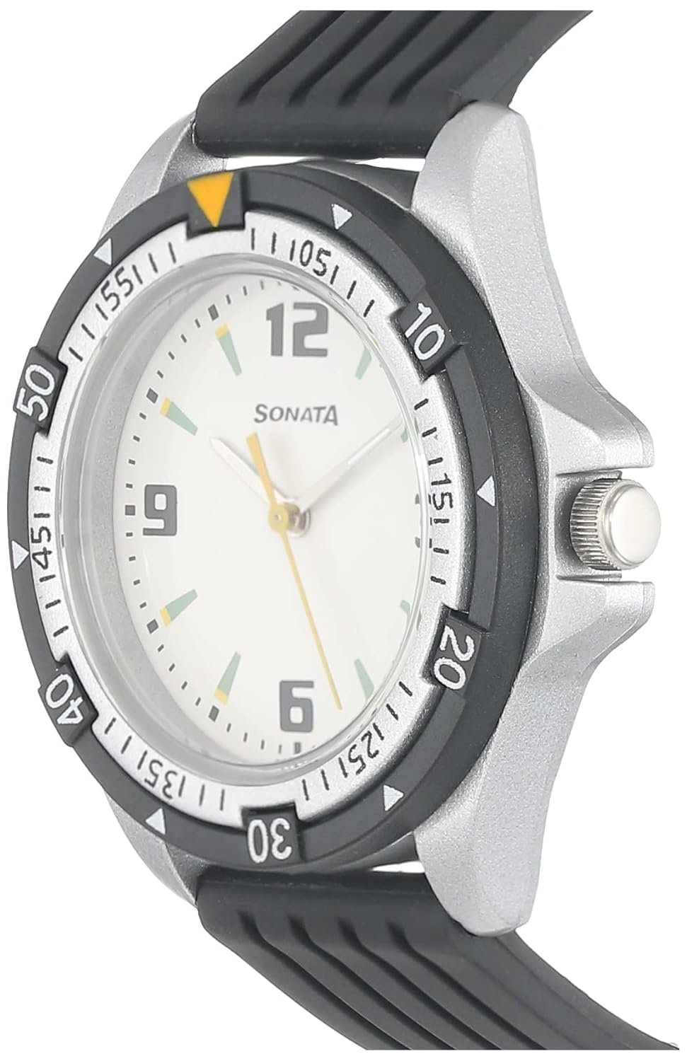 SF Quartz Analog White Dial Black Plastic Strap Watch for Men- NT7930PP01