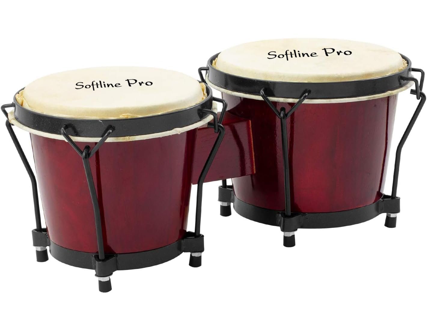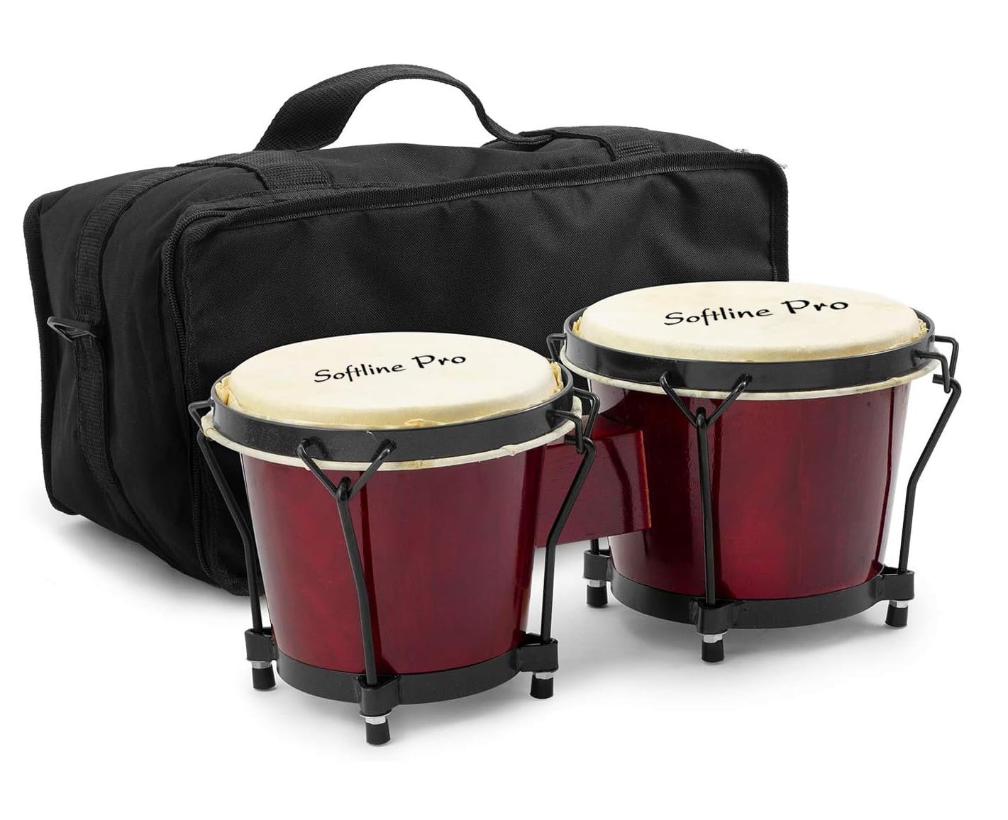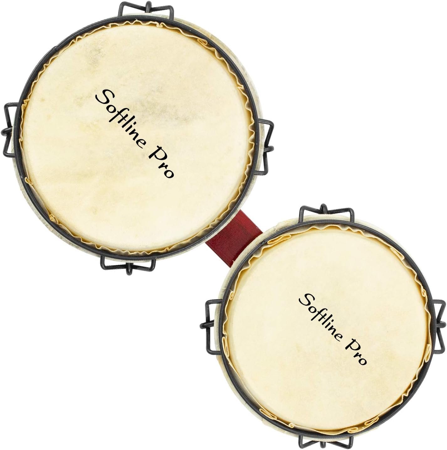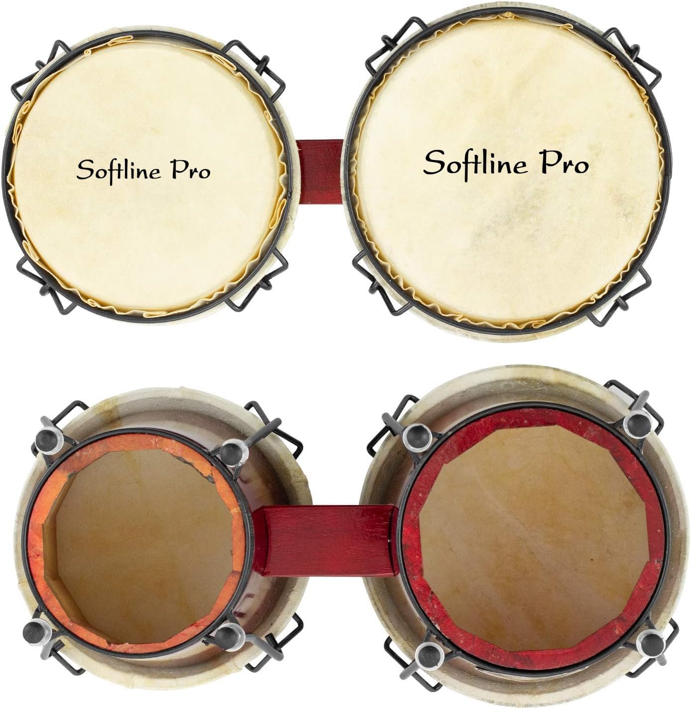 Softline Pro SP-BNG-RD Bongo Drum Set with Tuning Wrench & Padded Professional Wooden Percussion Instrument for Beginner Adults Kids – Natural Skin (Red)