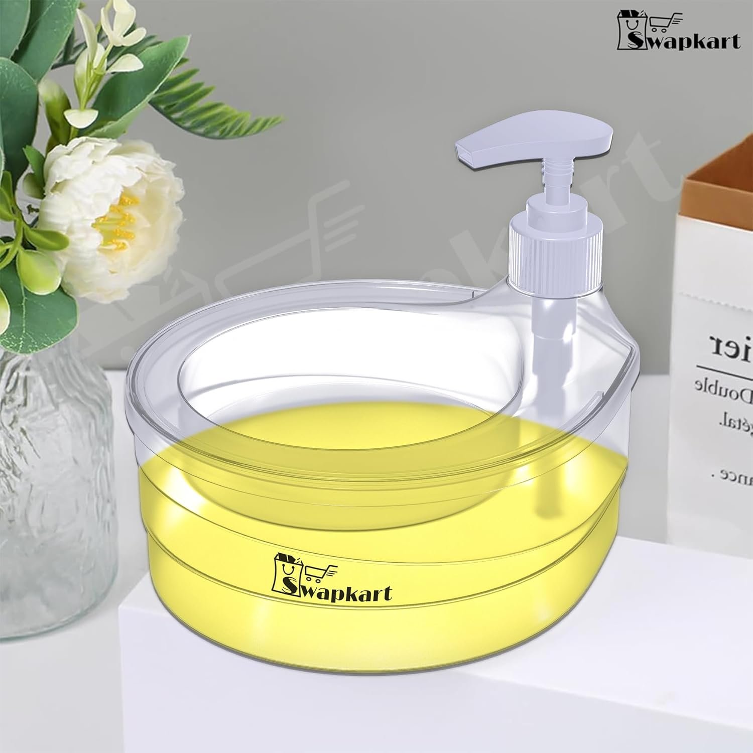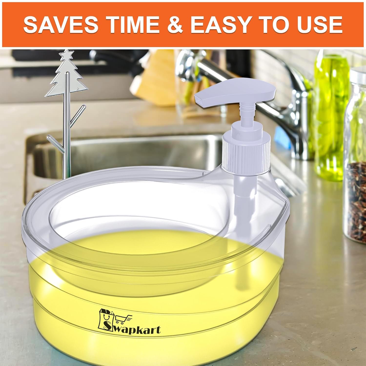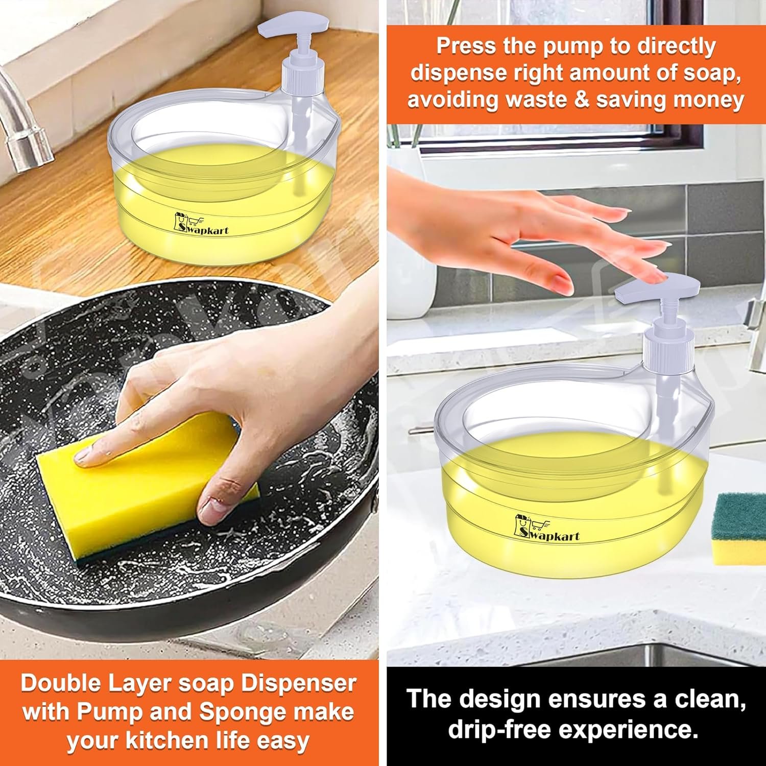 SWAPKART Double Layer Soap Dispenser for Bathroom Accessories Dishwasher Liquid Holder Dispenser Pump with Sponge Holder Kitchen Sink Accessories Items for Home Kitchen Gardening(transaprent mily)
