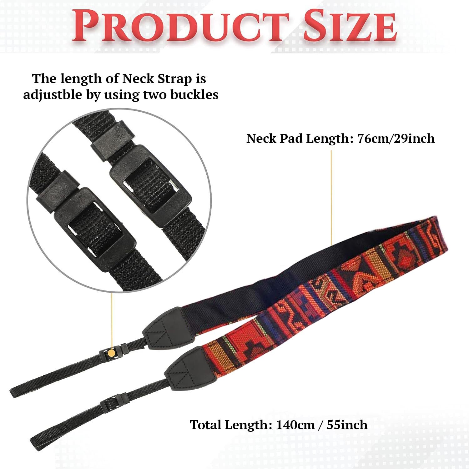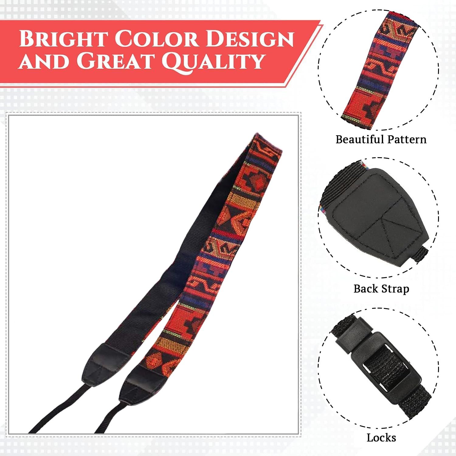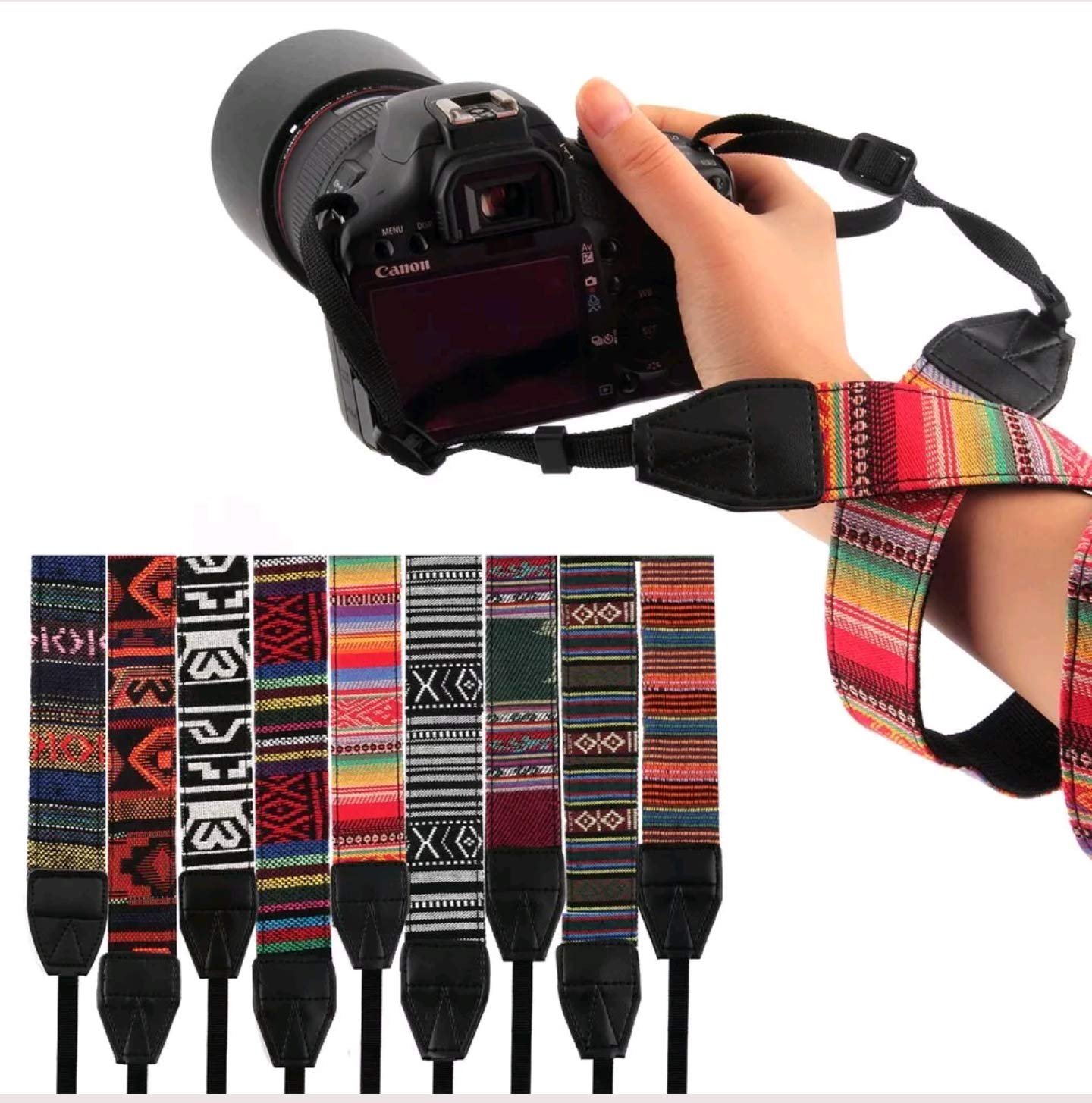 Description : This is vintage hippie letter camera strap neck strap for DSLR Camera, which is weaved by various colors yarn, very soft and comfortable. Specification: Material durable cotton yard Lanyard width approx. 1cm/0.39inch Strap width approx. 4cm/1.57inch Strap length approx. 74cm/29.13inch Total length approx. 141cm/55.51inch Color and style orange, red, black, gray, blue Lanyard length approx. 33cm (adjustable 2-33cm) Feature vintage and timeless style with adjustable buckles for perfect length adjustable features for preferred positioning universal strap fits for all brands of dslr camera. Package included : 1 x Strap for Camera.
