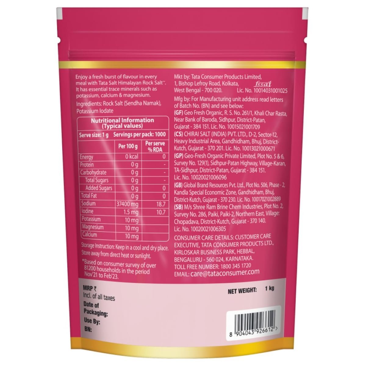 Tata Himalayan Rock Pink Salt, 1kg Pouch, Premium Sendha Namak, With Natural Trace Minerals, Low Sodium, Crystal Salt