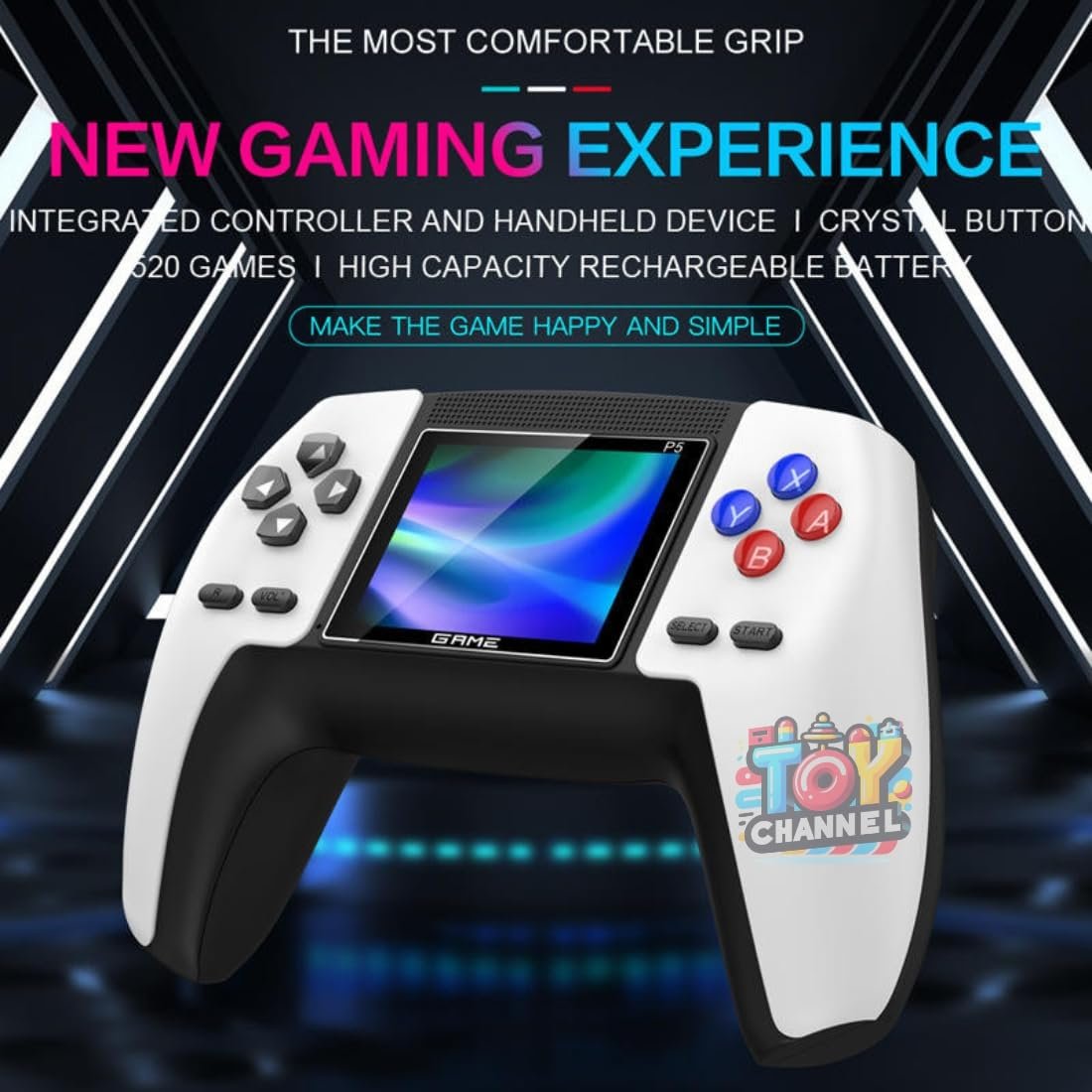 TOYCHANNEL Handheld Gaming Console with 520 Retro Games | Controller Design, Crystal Press Buttons & 3-Inch HD Screen | Rechargeable, Portable, TV Output | Return & Birthday Gift for Kids Ages 6-14