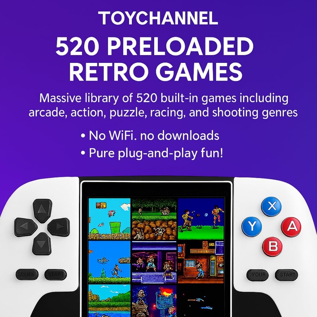 🎮 520 Preloaded Retro Games: Packed with a massive library of 520 built-in games including arcade, action, puzzle, racing, and shooting genres. No Wi-Fi, no downloads—just pure plug-and-play fun!