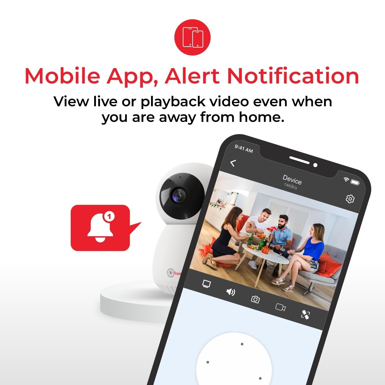 View & Talk, Enables you to stay in touch with your loved ones from anywhere, meaning you can also talk while viewing the live video feed on the phone.