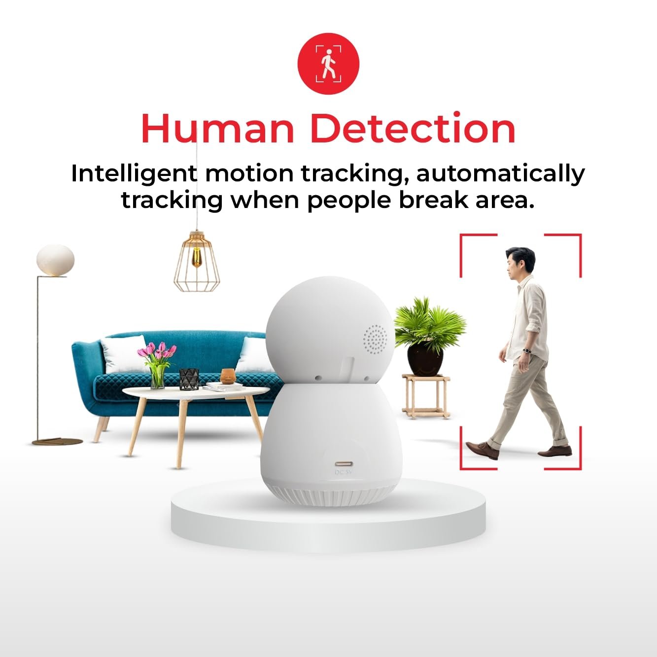 Supports Motion Tracking, Whenever unexpected motion is detected in the video frame, the camera has been devised to rotate automatically to track the movement of people and record it to investigate later.