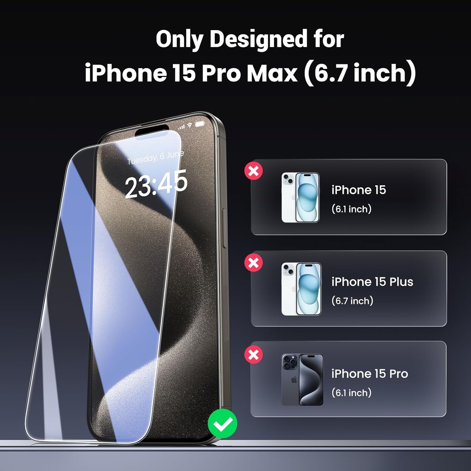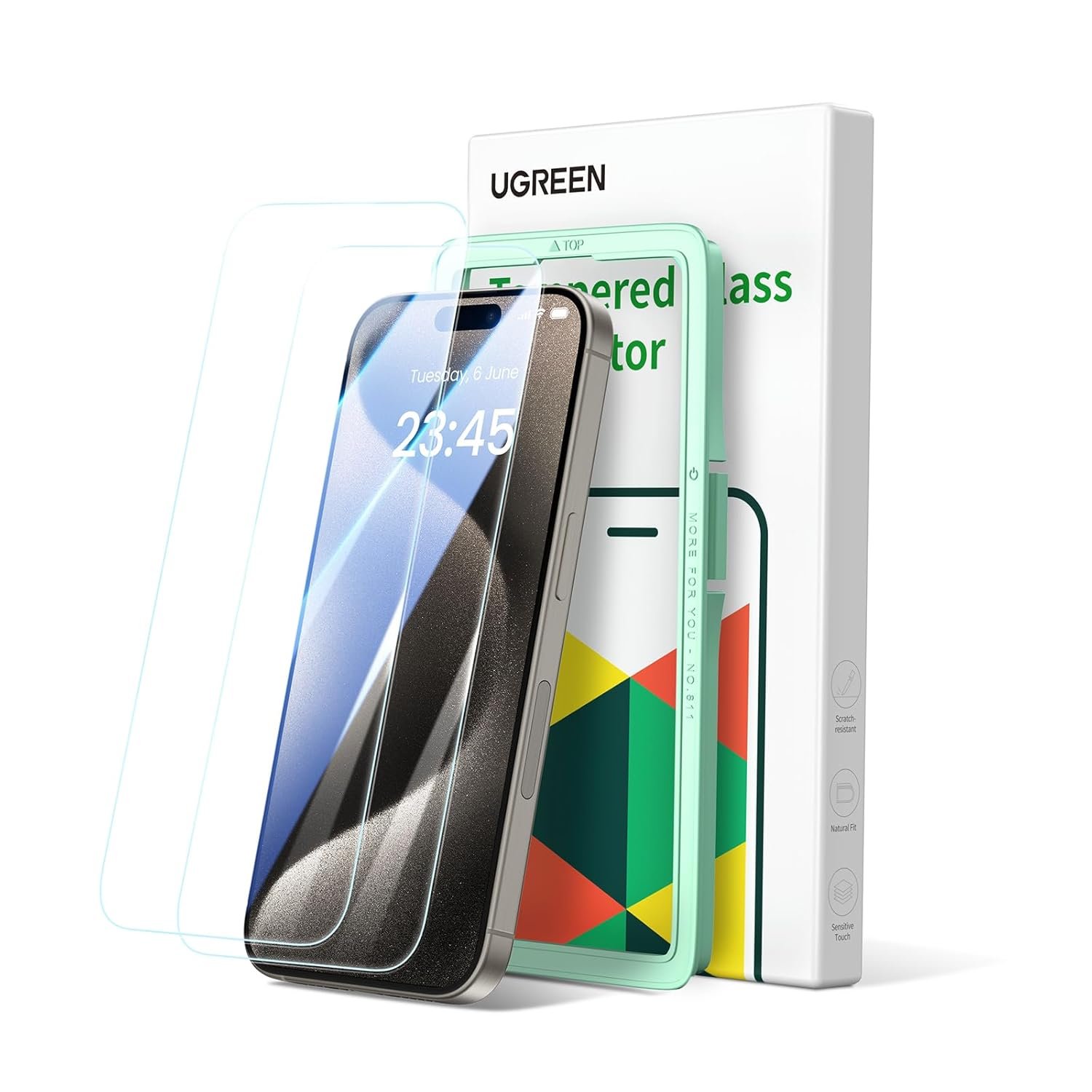 【Designed for iPhone 15 Pro Max】UGREEN Glass Screen Protector is specifically designed compatible for iPhone 15 Pro Max 6.7 inch, 0.33mm thickness screen protector has high-reaction and transparency, no barriers to playing games.