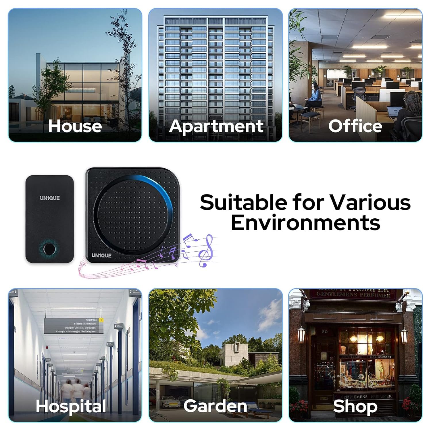 [ Long Operating Range ] Un1que self powered calling bell operating range is 300m / 1000ft in open areas. You can install it in any corner in your space