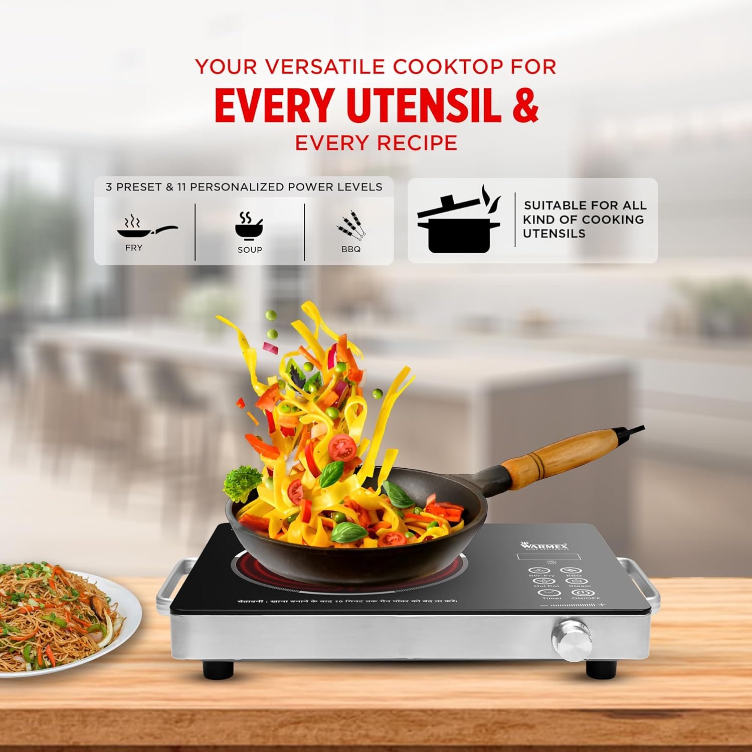 【🍳 ALL-UTENSIL COMPATIBILITY】 No need to invest in new cookware! This cooktop works with all types of utensils, including glass, steel, and ceramic, ensuring a hassle-free cooking experience for all your kitchen needs.