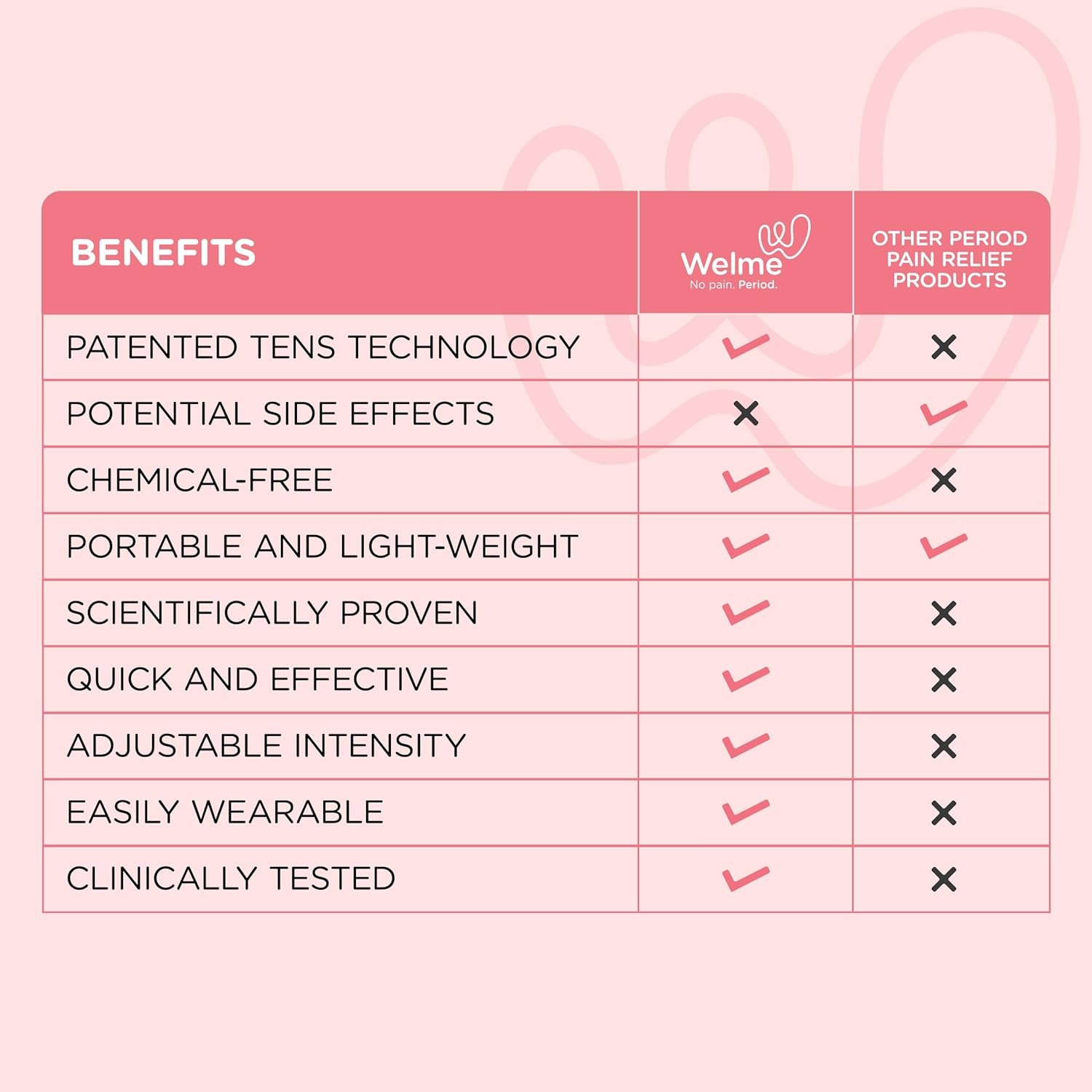 CLINICALLY PROVEN DEVICE: Welme’s efficacy and safety have undergone rigorous examination through clinical testing. These trials aim to ensure that the device functions as intended, effectively providing relief from period cramps through its TENS technology. Welme is a clinically proven and tested device for you and your loved ones.