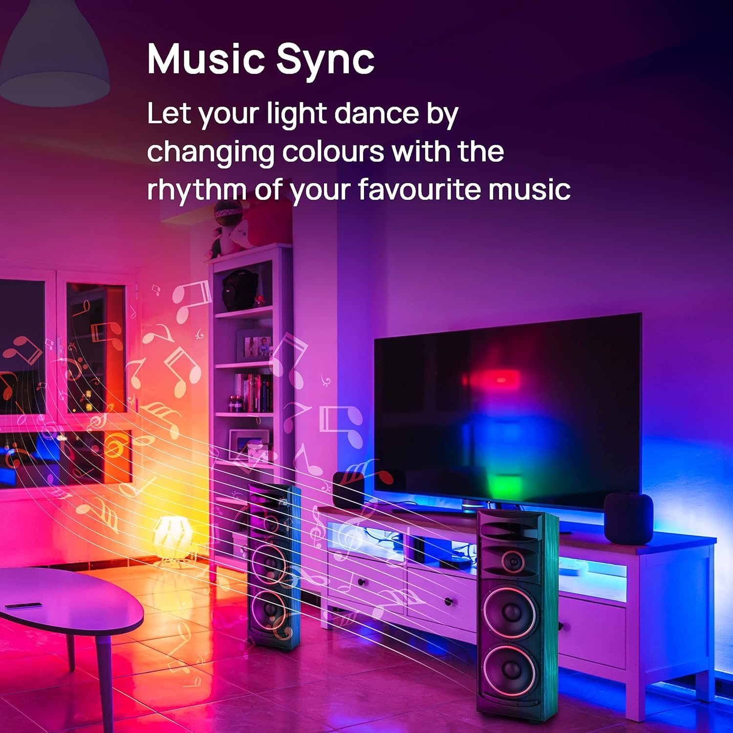 Music Sync Function: Let your light dance by changing colours with the rhythm of your favourite music