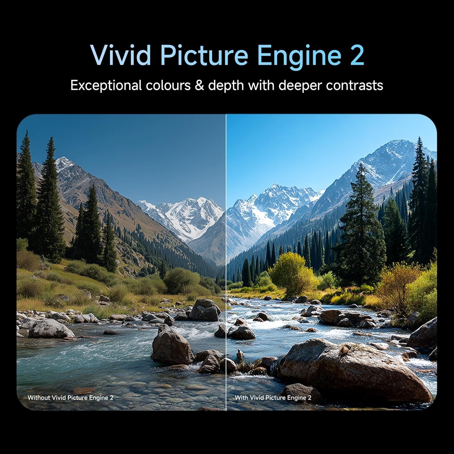 Vivid Picture Engine 2 deliver visuals with rich color, contrast, and brightness enhancements.