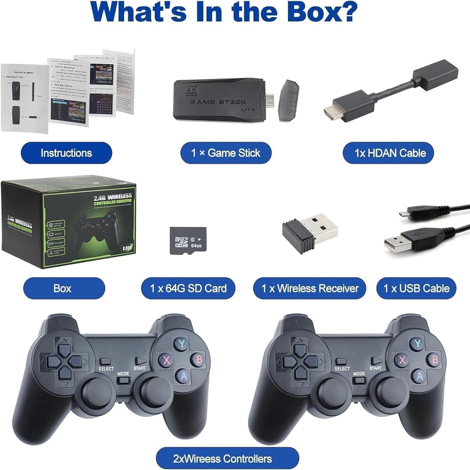✅【Over 20,000 Classic Games Included】Step into nostalgia with our retro gaming console featuring over 20,000 built-in games and 9 pre-installed emulators. The included 64GB TF card ensures you can start playing instantly with no downloads needed. Perfect for family game nights and reliving treasured childhood memories.ONNECTIVITY: Features 2.4GHz wireless technology for reliable, lag-free gaming with up to 10 metres range