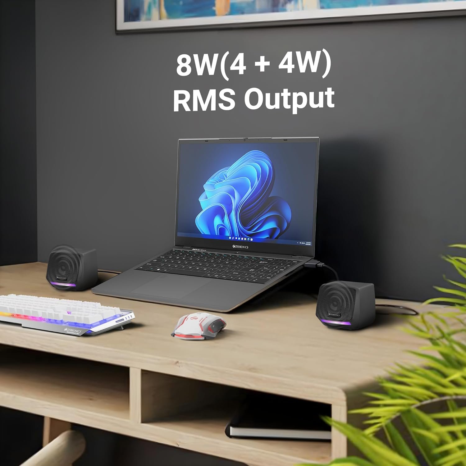 Dynamic output: Apt for delivering immersive sound with clear audio, the ZEB-Igloo 1 2.0 speaker operates at 8W, ensuring a captivating listening experience