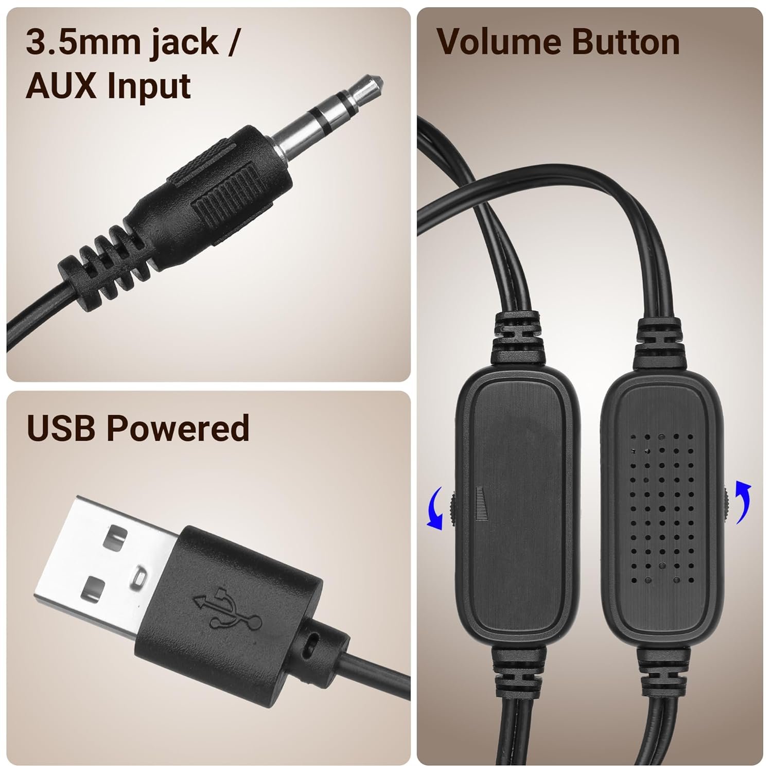3.5mm line input: The speaker‘s 3.5mm audio jack ensures effortless connectivity with computers, laptops, and other audio sources