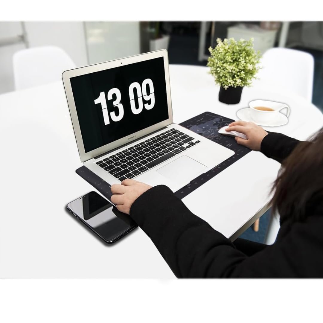 ?Natural Rubber Material and Machine Washable?The keyboard pad is made of natural rubber material, This mouse pad large has no irritating odor and is non-toxic and risk-free. If coffee or other drinks are spilled on top of desk mats, simply throw office desk accessories into the washing machine.