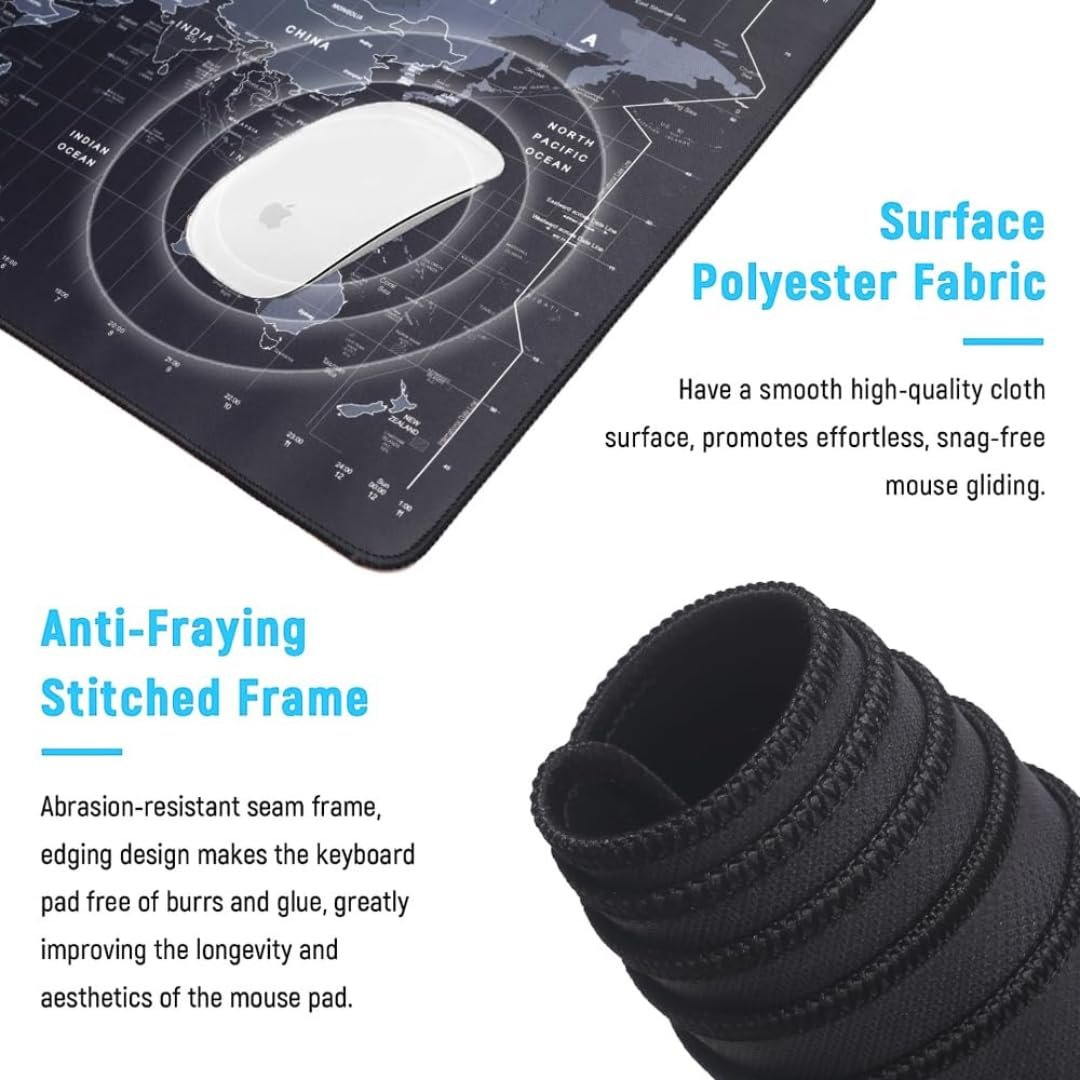 Customers find the mouse pad to be of good quality and value for money, with clear printing and smooth texture that feels premium to the touch. The size is praised for being big enough to accommodate both keyboard and mouse, and they appreciate its suitability for gaming and office work. The design features an appealing world map pattern, and customers like its grip, noting that the mouse glides smoothly on the surface and doesn’t slide around on the desk.