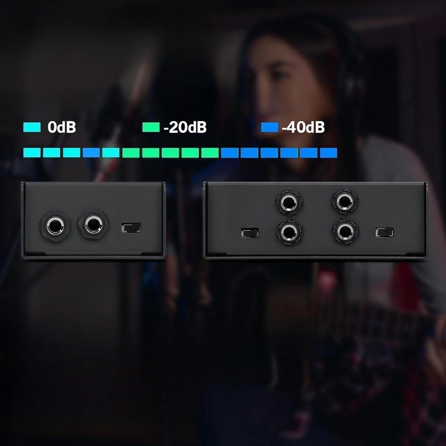 Convenient Switch Controls‘: Featuring attenuation switches (0dB, -20dB, -40dB), this Passive DI Direct Box allows precise adjustment to suit different audio environments. It ensures clear and balanced sound, No more unwanted noise or signal overload