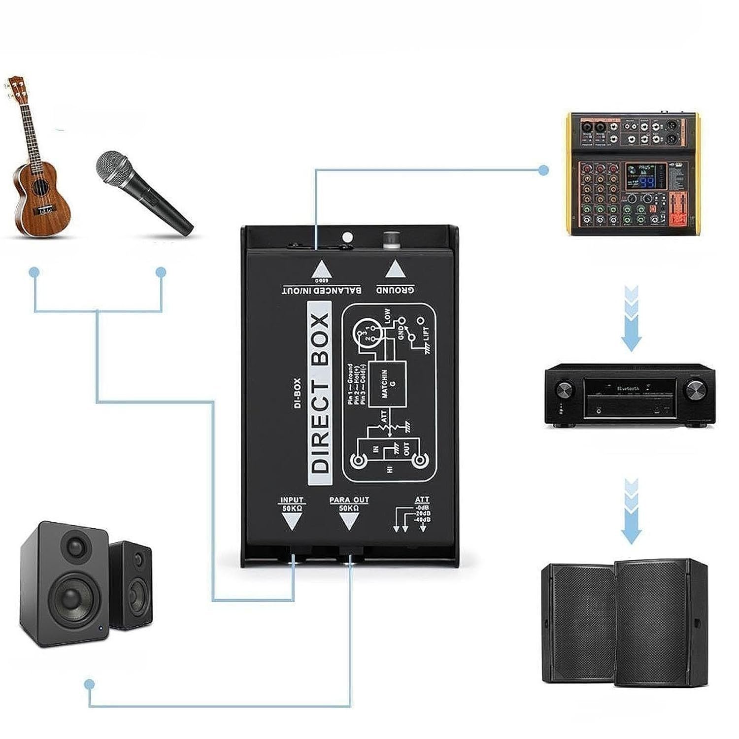 ZOOMELLA Passive Direct Box BStudio Live Di Box for Professionals Audio Engineers Mono|Parts & Accessories|Musical Instruments & Gear